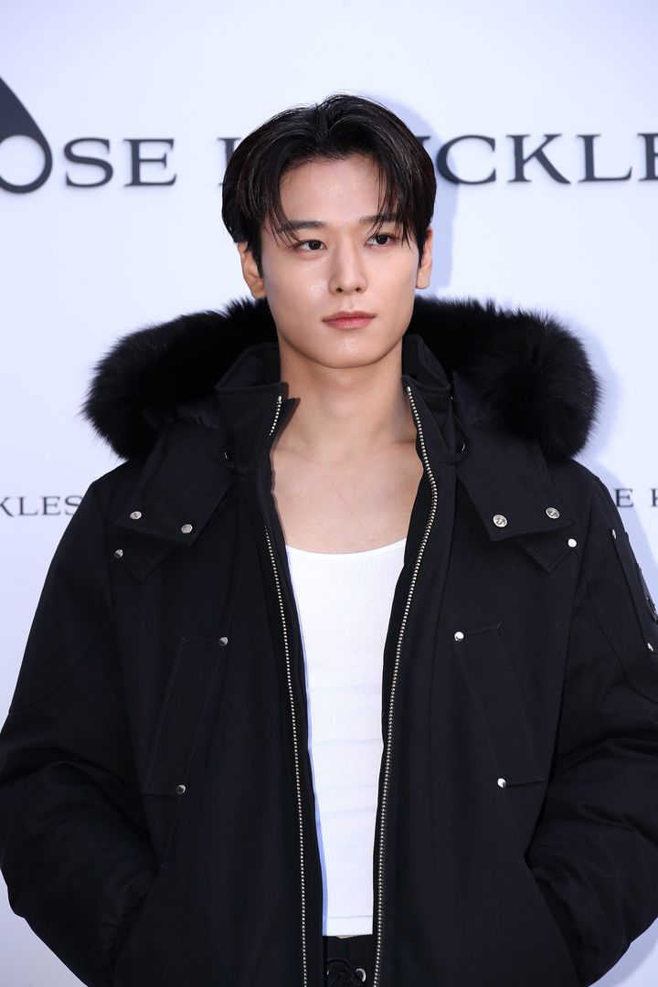 ソウルで開催された「カナダグース」のイベントでは、サイドを短くカットし、さっぱりとした清潔感のあるヘアで登場。ツヤを帯びた血色感のあるリップが、まるで冬の冷たい寒空の下で待ち合わせたような体温を感じさせる仕上がりに。