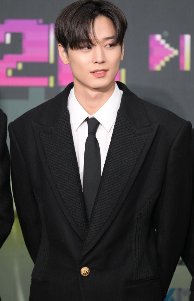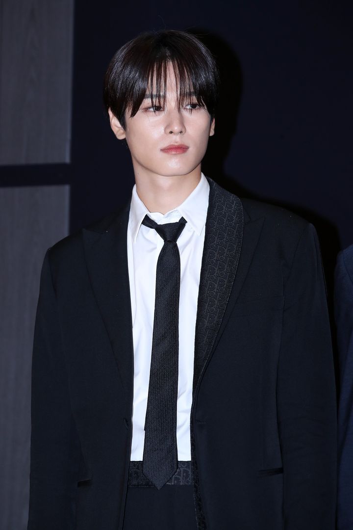 「2022 KBS歌謡祭」では黒髪×ブラックスーツでシックな大人の魅力を発揮! 頬骨にほんのりコントゥアーを入れたシルキーマットな肌で、持ち前の美形を最大限生かして。