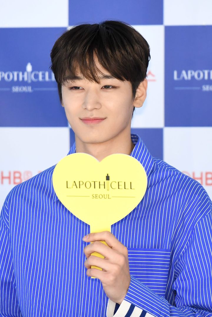 THE BOYZが広告モデルを務める「ラポティセル」のサインイベントにて。ハートのプレートを持ってにっこり微笑む愛くるしさ全開のジュヨン。ふんわりシルキーな肌にナチュラルな黒髪が好感度大♡