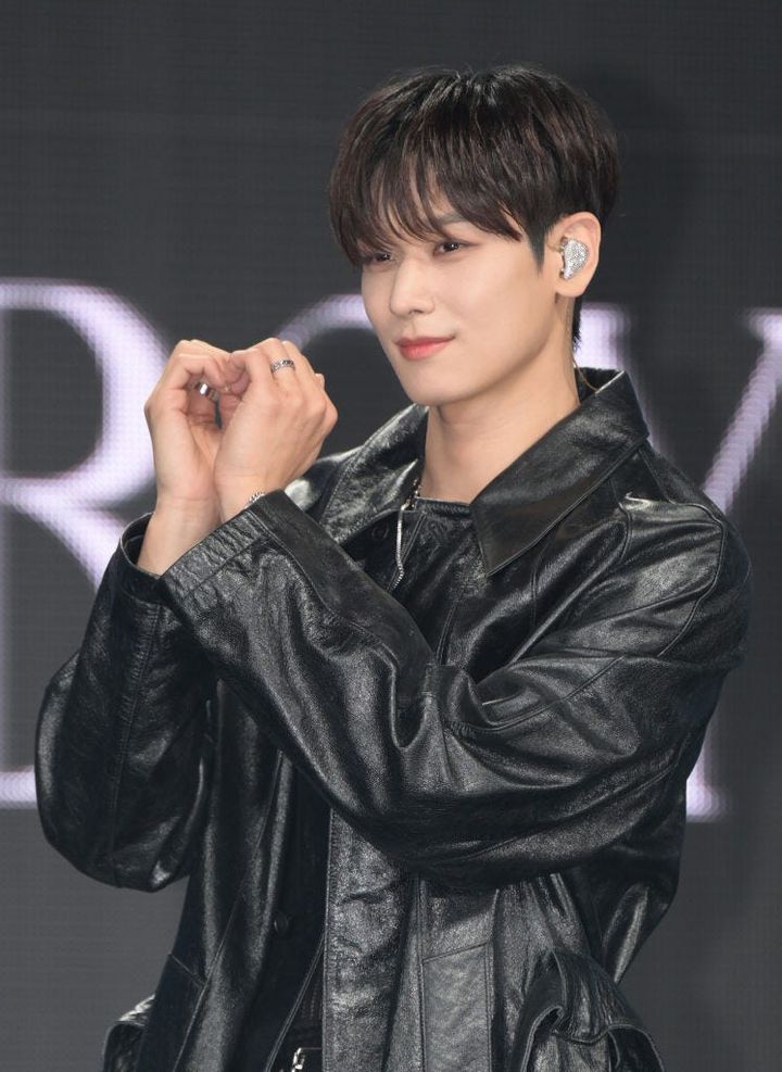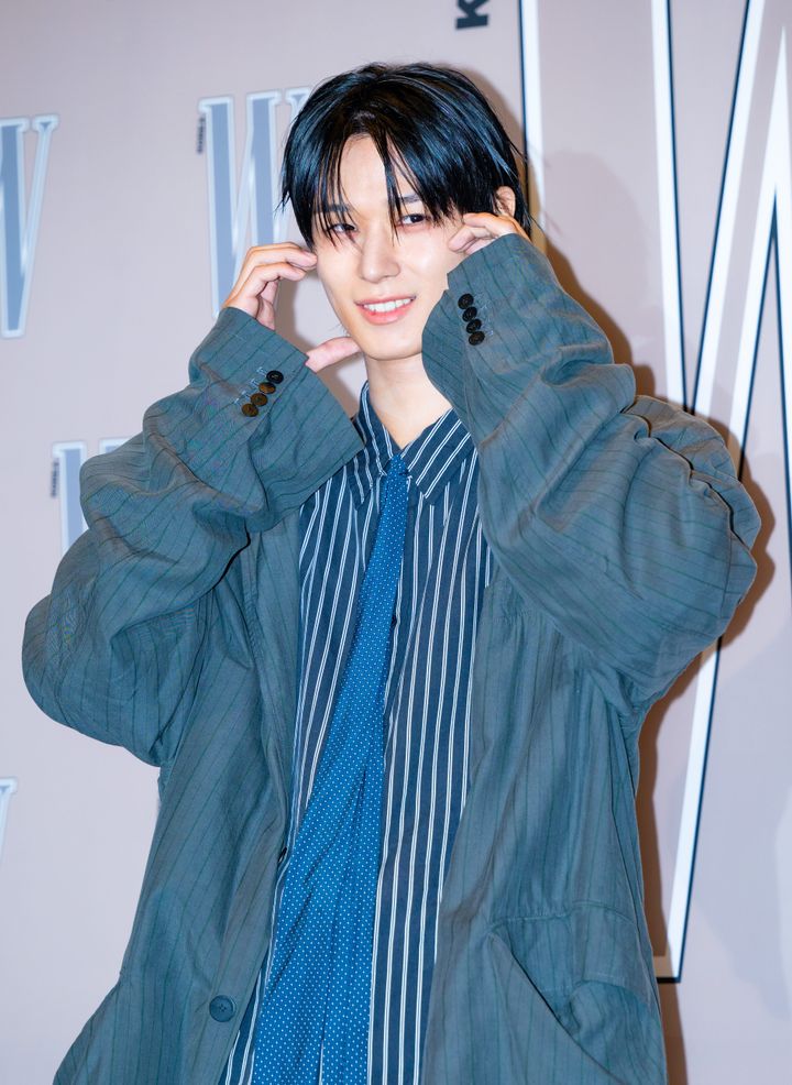「W Korea」主催のチャリティーイベントに、メンバーのヨンフン、ヒョンジェ、ソヌらと出席。下まぶたに赤みシャドウをのせたうさぎ目メイク×ハートポーズが可愛い♡