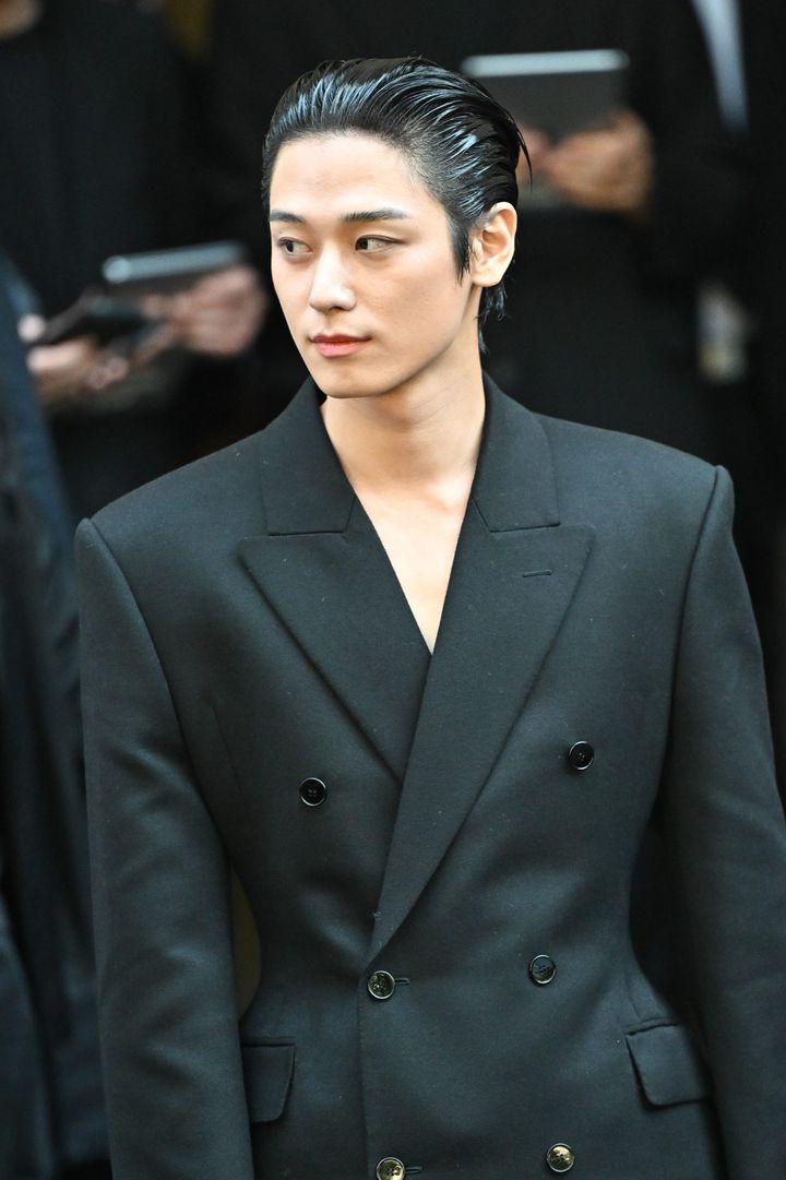 「バレンシアガ」2024-25年秋冬オートクチュールコレクションでは、ワイルドな濡れツヤオールバックで持ち前のカリスマ性を存分に発揮。素肌にまとったジャケットからあふれ出る艶っぽい大人の色香でファンを悩殺!