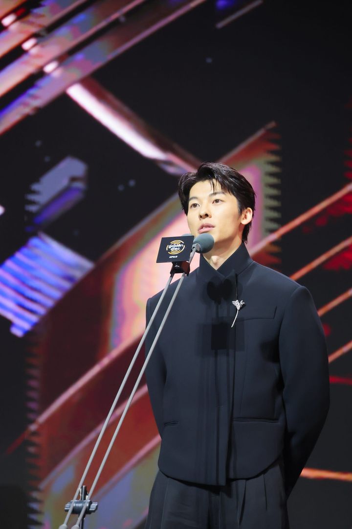 JOLINに続いて2組目の新人賞を発表したのは人気俳優のアン・ヒョソプ。中国語でも挨拶し、会場からは大歓声が。