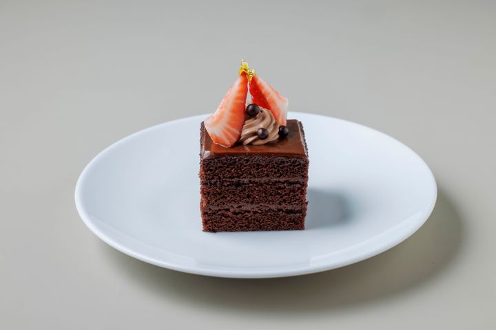 「苺のチョコレートケーキ」は今回のアフタヌーンティーのスペシャル。しっとりと焼き上げたチョコレートスポンジに、ヴァローナチョコレートのリッチなガナッシュをサンドし、苺やチョコレートパールが贅沢にあしらわれた、濃厚かつ繊細な味わいです。