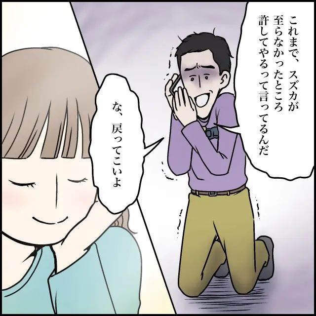 「これまで、スズカが至らなかったところ許してやるって言ってるんだ。な、戻ってこいよ」と言うタカシはもはや相手にする価値すらない。私はタカシの言うことを、少し微笑みながら聞いた後、