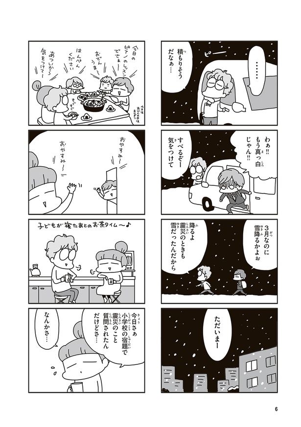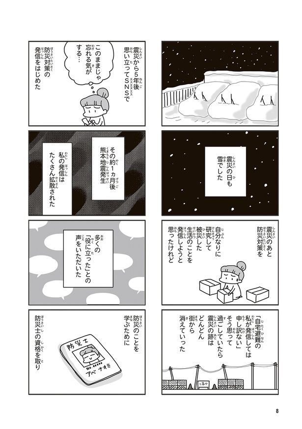 本書は、現在は防災士としても活動する漫画家&イラストレーターである著者が、東日本大震災を経験した当時(2011年3月11日〜4月)の詳細なメモを元にまとめています。