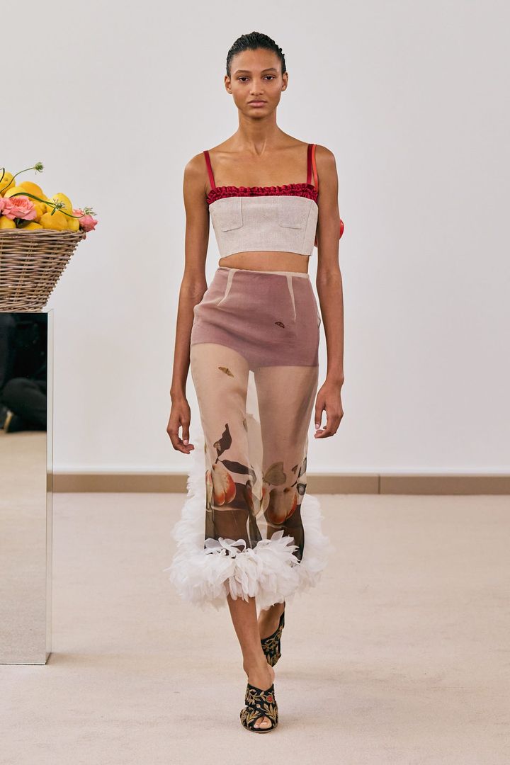 プリントや装飾が施されたステートメントスカートは、カジュアルになりがちな毎日の着こなしをドラマチックに変えてくれる。「シャネル」でマチュー ブレイジーが披露した新作に注目してほしい。Tシャツやハリのあるコットンシャツに、とびきり主張のあるスカートを合わせたスタイルが印象的だ。シンプルなニットやシャツを合わせてスカートを主役に輝かせるのはもちろん、柄と柄を組み合わせた大胆なルックに挑戦してみるのもいいかもしれない。