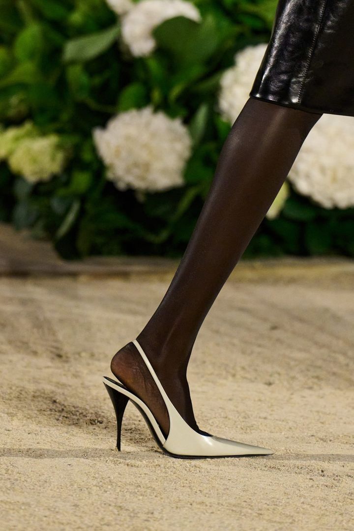 2026年のランウェイで、特に圧倒的な存在感を見せたのがスリングバックシューズ。「サンローラン」はつややかなグリーンやチェリーレッド、クラシックなブラックやホワイトで展開し、「プラダ」はラインストーンの装飾が輝くデザインを披露した。ウールパンツやミディスカート、あるいはテーラードショートパンツと合わせれば、ぐっと洗練された印象に。季節を問わず活躍する定番アイテムとして取り入れるなら、ニュートラルカラーを選ぶのがおすすめ。