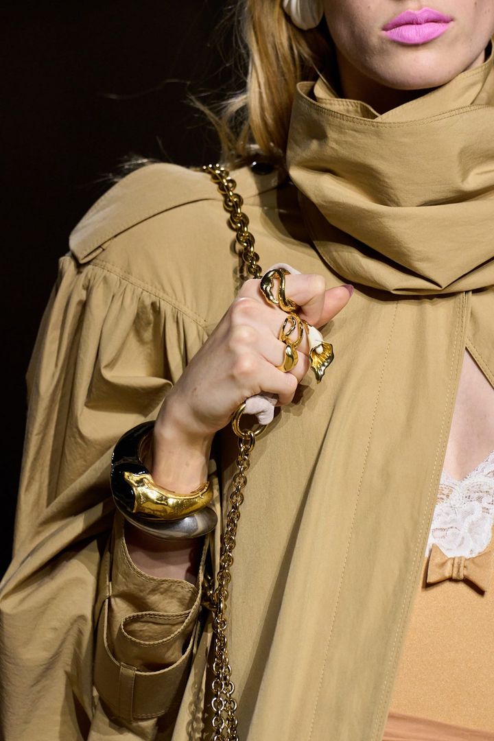 「クロエ」や「ヴァレンティノ」のランウェイで見られたように、チェーンハンドルバッグはカジュアルとフォーマルをつなぐ、まさに究極の万能アクセサリー。ジャケットの肩にかけたり、クロスボディで身につけたり、あるいは手首に巻きつけたりすることで、チェーンそのものがまるでジュエリーのような存在感を放つ。なかでも心を奪われるのは「クロエ」のデザイン。繊細なゴールドチャームが軽やかな音を立て、とびきりの遊び心を添えてくれる。