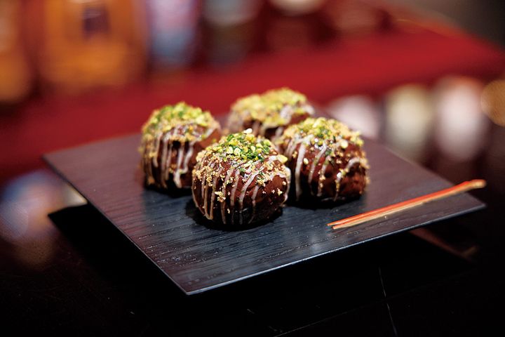グッチのブランド美学を体験できるバーエリアの人気メニュー。食感も驚きの「たこ焼きチョコレート」¥3,000