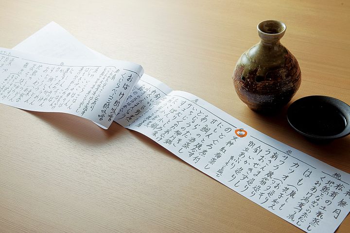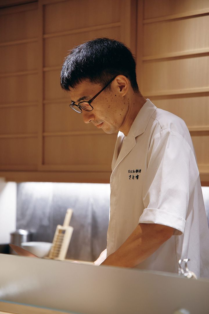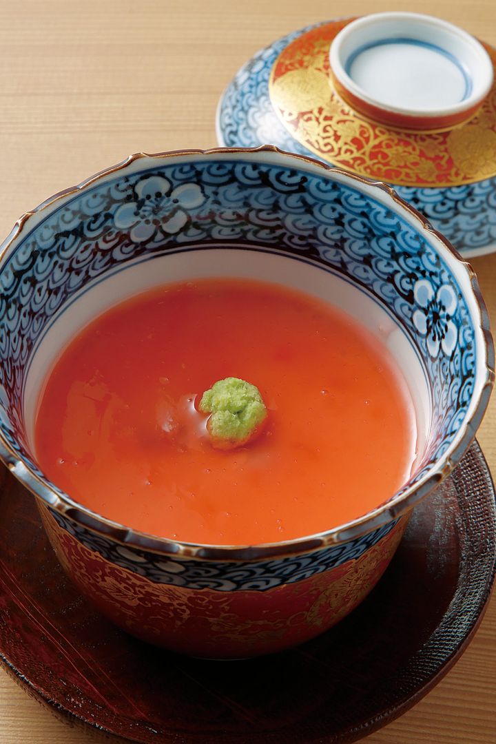 手書きのお品書きには、定番から季節の品までおよそ80種もの料理がずらり! 「20年以上一緒に仕事をしてきた師匠が店をコースのみに切り替えるときに、暖簾分けしてもらいました」と6月に“単品割烹”を構えた佐藤淳二さん。好きな料理を自由に選び、好みの順番で存分に――そんな割烹ならではの贅沢を守りたいのだと語ります。メニューに迷ったら、まずは師匠の店「なにわ料理 有」から受け継いだ名物「天神紅梅蒸し」を。目に鮮やかな梅酢のあんをかけた茶碗蒸しの中に、丁寧に塩抜きしてだしで炊いた大粒の梅干しと焼き餅が潜んだひと品は、絶妙な酸味と塩味が食欲を刺激。その後はお造り、焼物、揚物、洋食風のメニューまでお気に召すままに。温かいおもてなしも特別な時間を演出します。