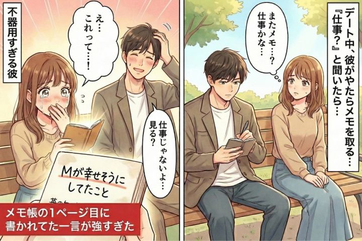 デートのたびに、小さなメモ帳を取り出しては何かを書き込む彼。「もしかして、デート中まで仕事のこと考えてるの?」と、彼の謎の習慣に不安を募らせていた私が見つけたのは、メモ帳に記された、あまりにも不器用で真っ直ぐな「一言」でした。