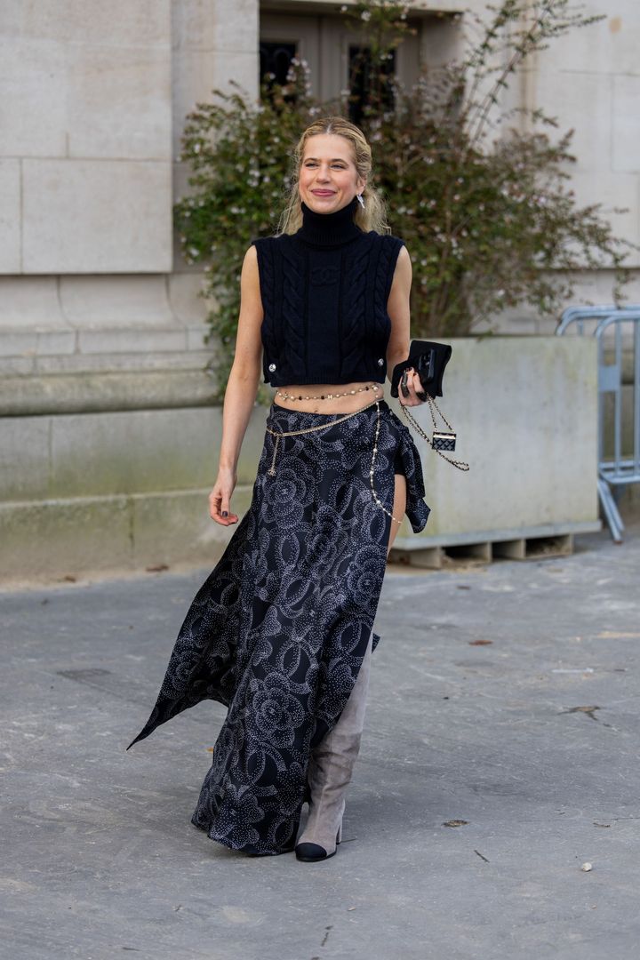 ランウェイとストリートの両方でキャッチできるアイテムこそ、いま本当に旬のトレンドと言える。ボーホーなロングスカートはオフランウェイでも熱視線を浴び、とりわけスエードブーツとの相性の良さが際立っていた。この組み合わせは、シンプルなルックを70年代へとタイムスリップさせる力を持つ。ローゲージニットやフリンジ付きのベストを合わせればレトロに、ブレザーを羽織れば今っぽく仕上がる、着こなしの幅が広いスタイルだ。