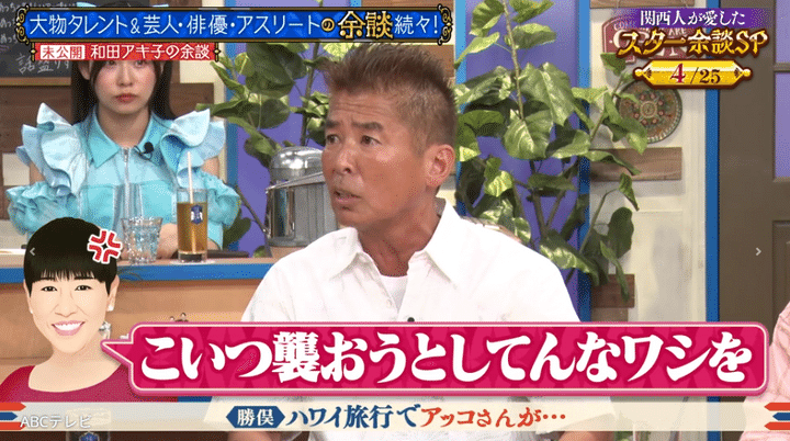 「俺アッコさんとハワイに一緒に行った時に、アッコさんがUGGっていうブランドのブーツを買いたいって」と話し始めた勝俣。UGGのショップは街中にあり、和田が泊まっているホテルからタクシーで5分ぐらいだったため、そこで待ち合わせしようと約束。勝俣は家族と一緒に10分前には現地に到着し、和田を待っていたという。