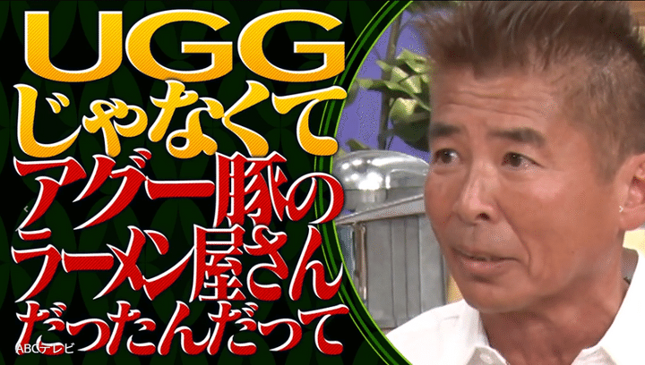 そんな状況で、「こいつ襲おうとしてんなワシを」と思ったという和田。タクシーはどんどん人気(ひとけ)のない所に行き、運転手が「着いたぞUGG」と言った時、和田はここで襲われると覚悟した。しかしタクシーを降りると、そこにはUGGのお店ではなく、アグー豚のラーメン屋があったという。