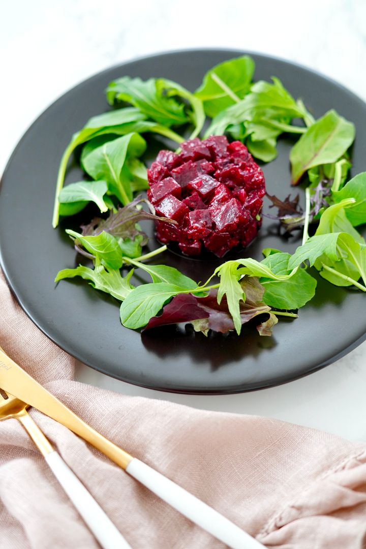 ビーツの甘みと赤ワインビネガーのキレのある酸味が調和した、ワインのお供にぴったりの一品。冷蔵庫に常備しておけば、バゲットにのせて手軽なおつまみにしたり、肉や魚料理の付け合わせにしたりとアレンジ自在。鮮やかな色味も相まって、パーティーシーンに重宝すること間違いなし!