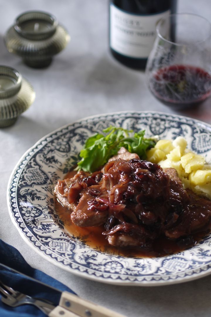 豚肉の赤ワインビネガーバターソース