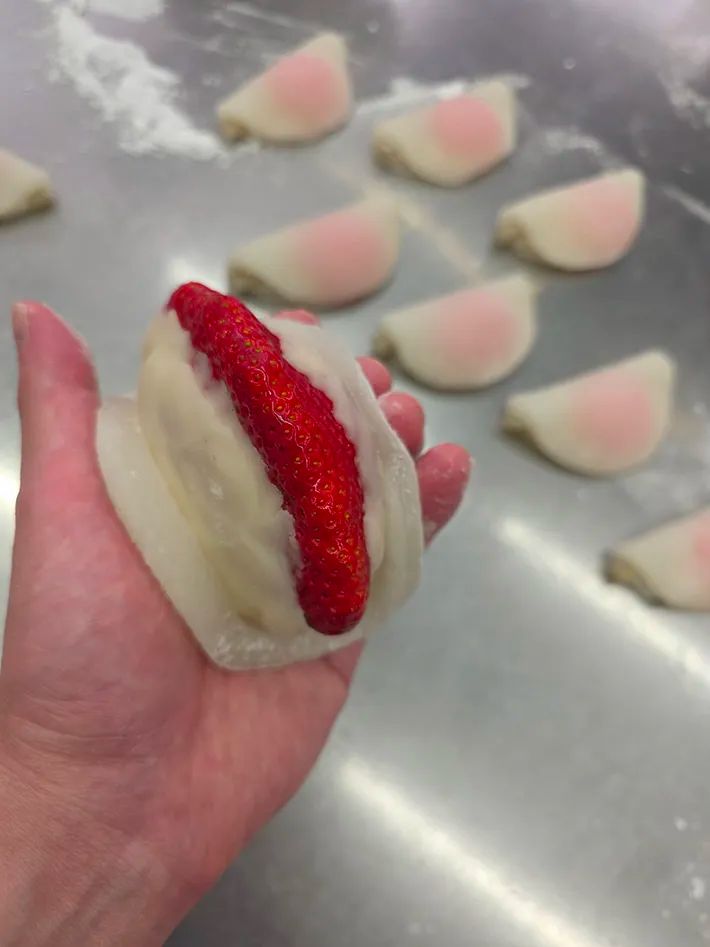 ただ、完成したものは、よくあるイチゴ大福の形とは違っていたようで…。