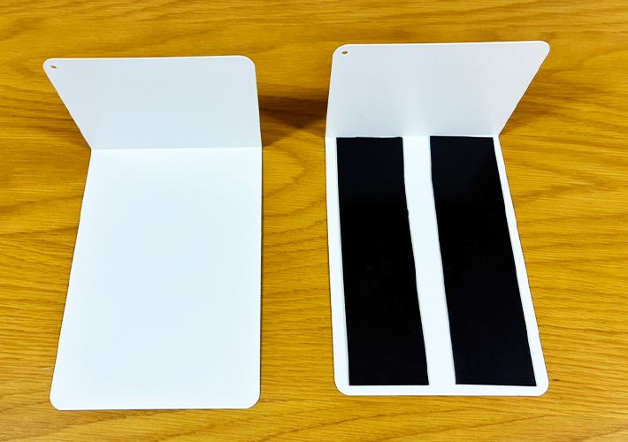 使っていないブックエンドを2つ用意し、以下の写真のようにマグネットシートを貼ってください。