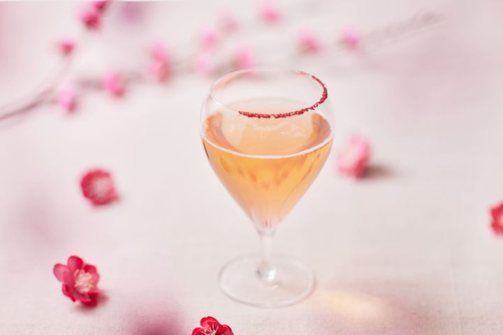 フルーティーな梅シロップをノンアルコールのスパークリングワインで割ったモクテルで、さわやかな酸味と甘みのバランスを楽しめます。さらにグラスの縁には細かく砕いた梅の実をあしらい、飲み進めていくなかで塩味が少しずつ加わって、最後まで飽きることなく味わい尽くせます。