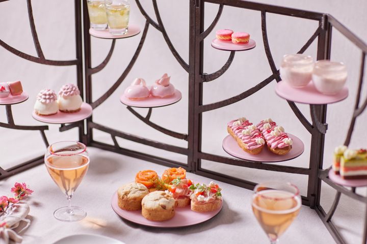 「リゾナーレ熱海」では2026年3月31日(火)までの期間、開花する梅の移ろいをテーマにした「梅ひらくアフタヌーンティー」を開催中。テラスの特等席で絶景を望みながら、紅色のかわいいスイーツが並ぶアフタヌーンティーを堪能できます。