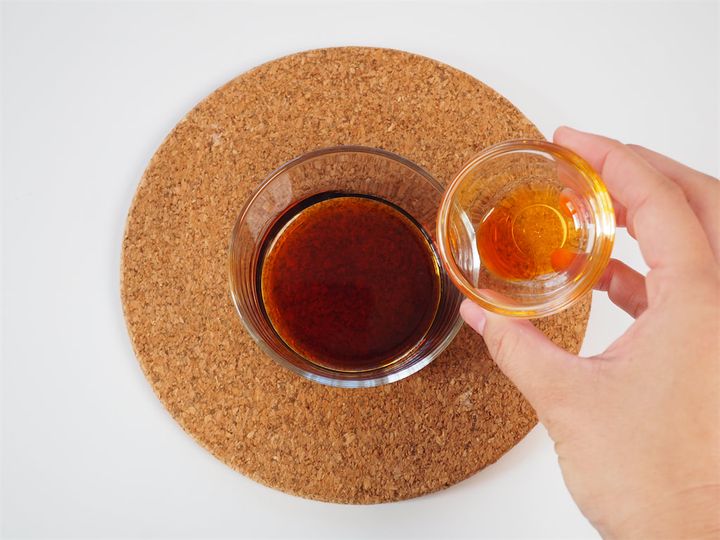 容器に[B]を入れ、混ぜ合わせて餃子のタレを作っておく。