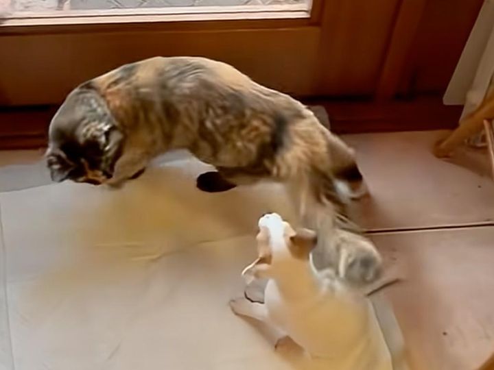 軽い気持ちで子犬に近づいた猫さん、想像以上の歓迎を受けて後悔する