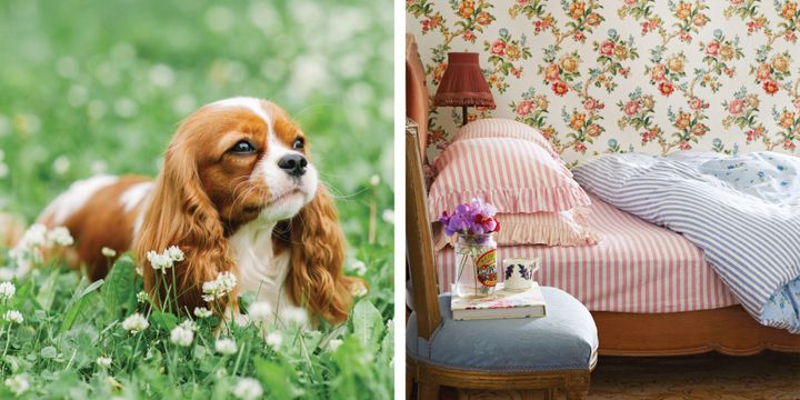 “おばあちゃんの家のような懐かしさ”を今っぽく楽しむグランドミレニアル・スタイル。このスタイルを好む人は、華やかな花柄のファブリックや、受け継がれてきた上質なヴィンテージ家具に目がない。そして何より、絹のように柔らかな耳を持つキャバリアへのオマージュとして、この犬種をモデルにした伝統的なスタッフォードシャー犬の陶器人形を飾るのがお決まり。