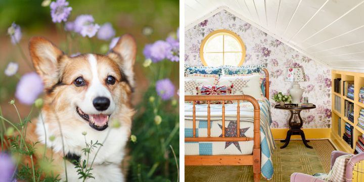カントリー風のコテージスタイルを愛する人は、小さくて愛らしいものに目がないはず。このスタイルによく使われる小花柄やフリルのクッションで飾られたベッド、あるいは部屋の片隅にあるこじんまりとした読書スペース。そんな少し狭くて居心地のいい場所にも、小〜中型犬の彼らなら飼い主のすぐ隣にすっぽり収まって、一緒にくつろぐことができる。