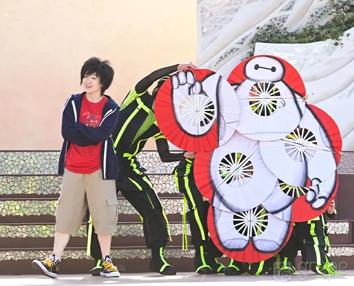 そんな『ベイマックス』のパートでは、桜と『ベイマックス』が描かれた旗や、扇子を使ったパフォーマンスなど日本らしさが含まれていました。