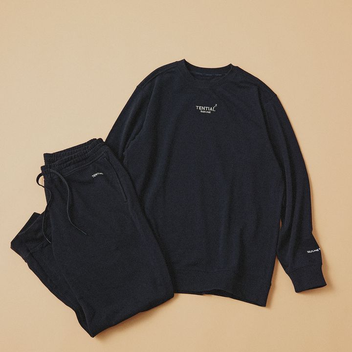 血行を促進する特殊繊維と寝返りしやすい設計で疲労回復をサポートするリカバリーウェアは、今やギフトの新定番。お揃いで愛用したい2025年HITアイテム。クルーネックシャツパンツセット¥26,840(©TENTIAL/TENTIAL カスタマーサポート)