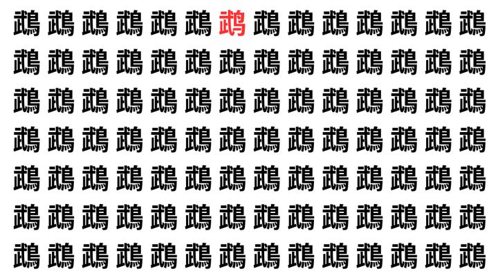 たくさんの「鵡」の中に、よく似た別の漢字が1文字だけ隠れています。