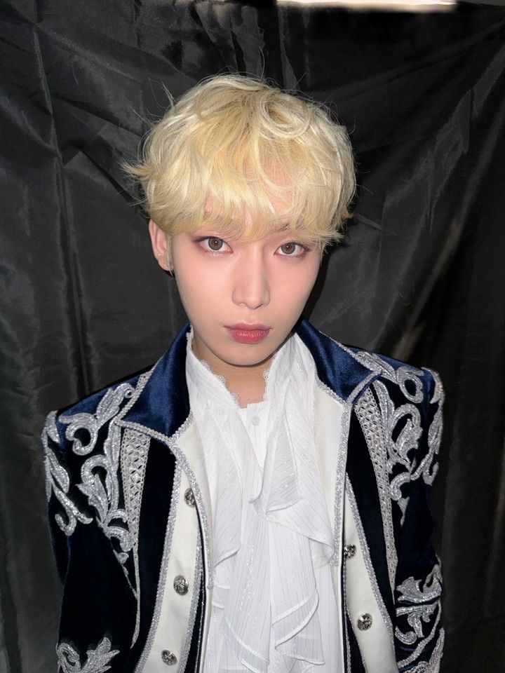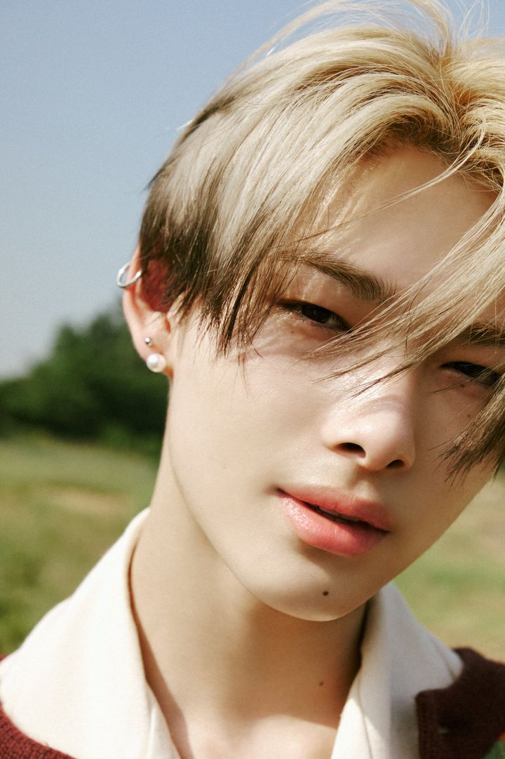 金髪イメチェンが大好評のソヌ。ミュートカラーで仕上げた涼しげな目元に、ローズピンクカラーをのせたアヒル口で真っ直ぐカメラを見つめる姿は、すべてが息を呑むほど美しい!