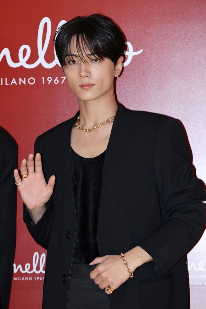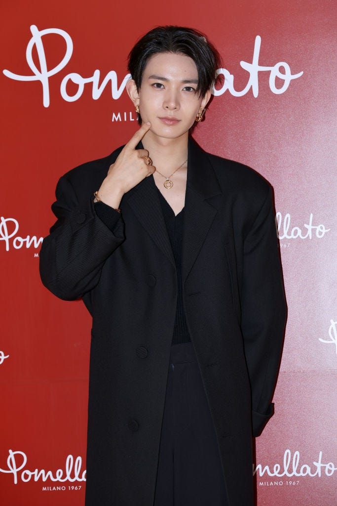 ヒスンと2人で出席した「ポメラート」のイベントにて。繊細な毛束でアレンジを加えることで、ジェイお決まりのオールバックヘアに透明感と柔らかさをもたらして。