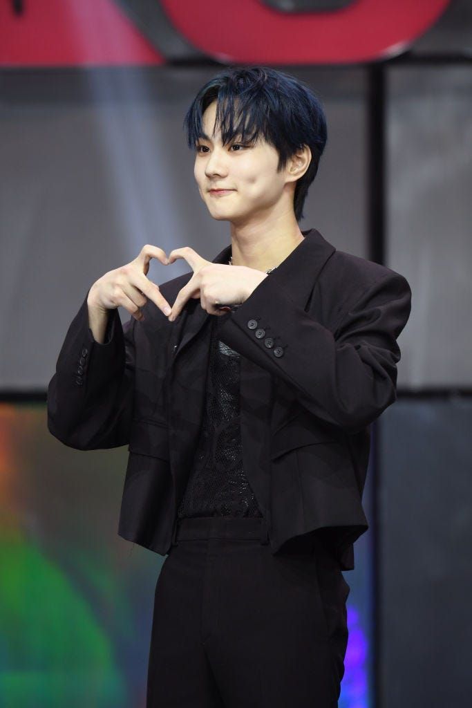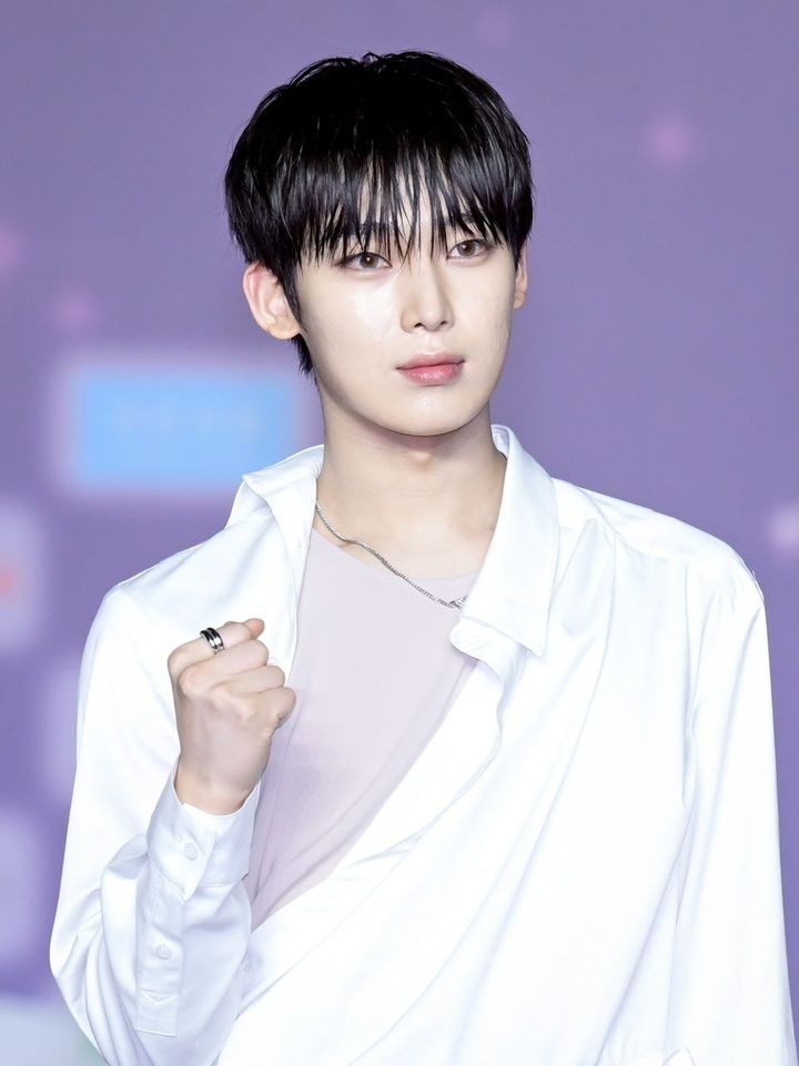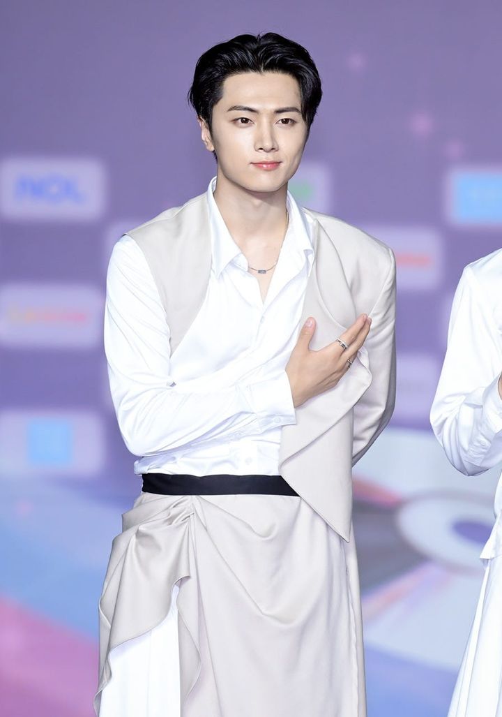 「CIRCLE CHART MUSIC AWARDS 2022」にて。前髪は短く、襟足は長く伸ばし、前後でコントラストをつけたことによって、ちょっぴりやんちゃな雰囲気に。
