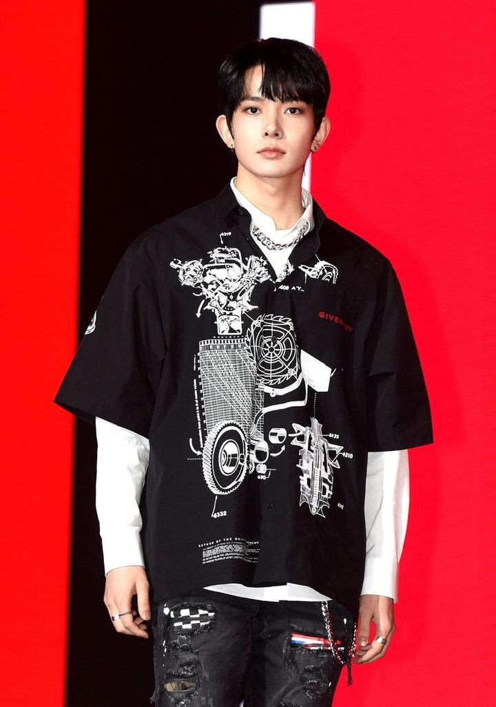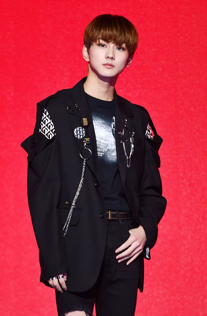 2ndミニアルバム『BORDER : CARNIVAL』の発売記念ショーケースにて。端正な顔立ちのヒスンは、スモーキーカラーのアイシャドウでグラデーションを作り、目元に深みを出してダークな雰囲気に。