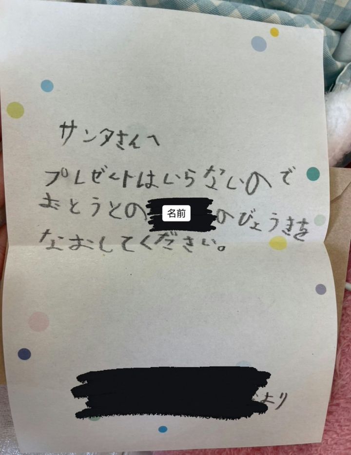 この記事ではX(旧Twitter)でバズった投稿を紹介します。今回紹介するのは、あやぽんず7y+6y🎗(@ayaponponpons)さんの投稿です。毎年子どもたちにとって楽しみのひとつであるクリスマス。あやぽんずさんの下へはサンタさん宛に、7歳の長男から手紙が届けられたそう。「プレゼントはいらないので」に続く、弟を思って書かれた願いに『私からもお願いします…!』と、念じる声が寄せられました。