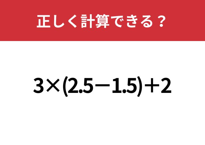 3. 電卓を使わず正解できる?「3×(2.5-1.5)+2」正しく計算できる?