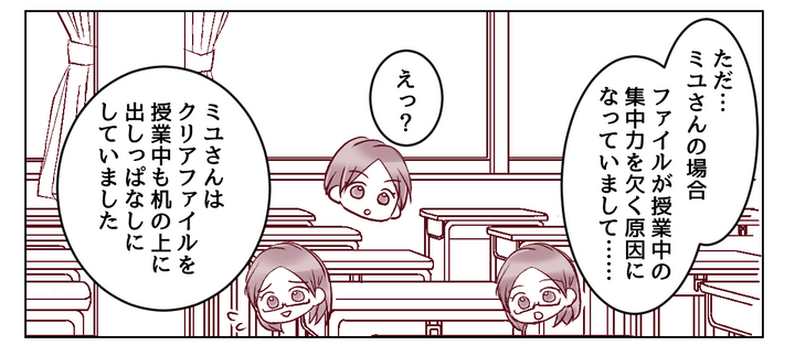 ミユは授業中にすべきことをせず、クリアファイルを見てはうっとりしていたそうで……。