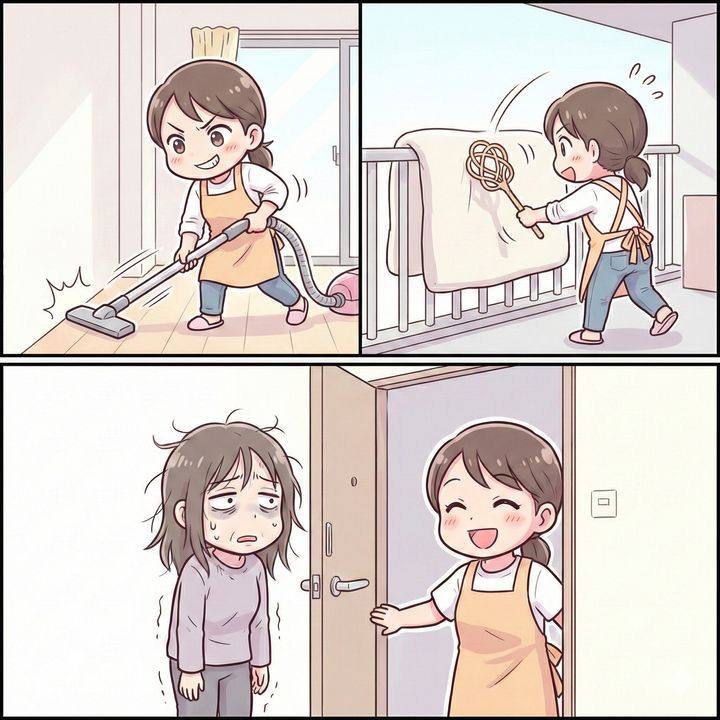 翌朝、私は朝の6時に掃除機を手に取りました。壁際を念入りに、わざと「ゴンッ」と軽く当てながら掃除を開始。