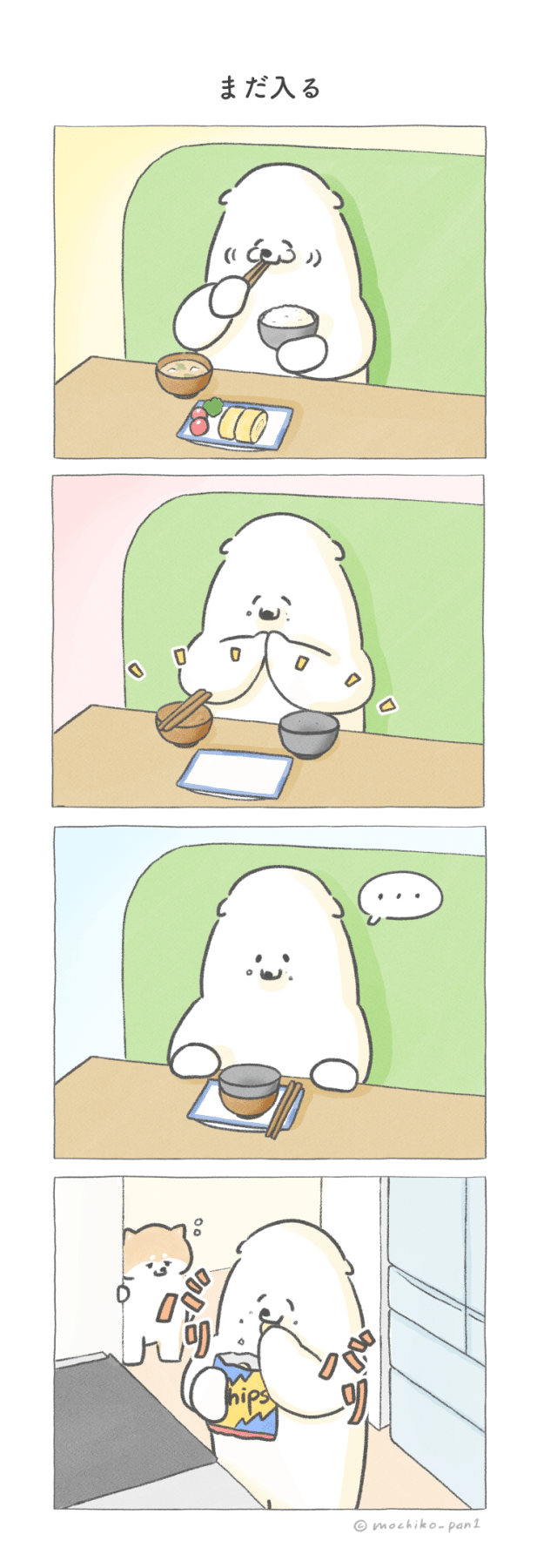 3. 【四コマ漫画】思わず二度見…!「まだ入る」クマシローの朝のもぐもぐタイム