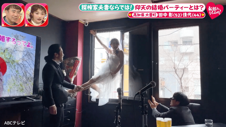 1月11日放送の『新婚さんいらっしゃい!』は、世界で活躍する探検家ご夫妻が登場。淡路島出身の夫は数々の険しい渓谷を制覇してきた、キャニオニング(渓谷下り)の専門家、田中彰(52)さん。2023年には、標高7,000m級の山々に囲まれたヒマラヤの“悪魔の谷”セティゴルジュを人類で初めて完全踏破! その功績が認められ、探検家の最大の名誉である『植村直己冒険賞』を受賞した。