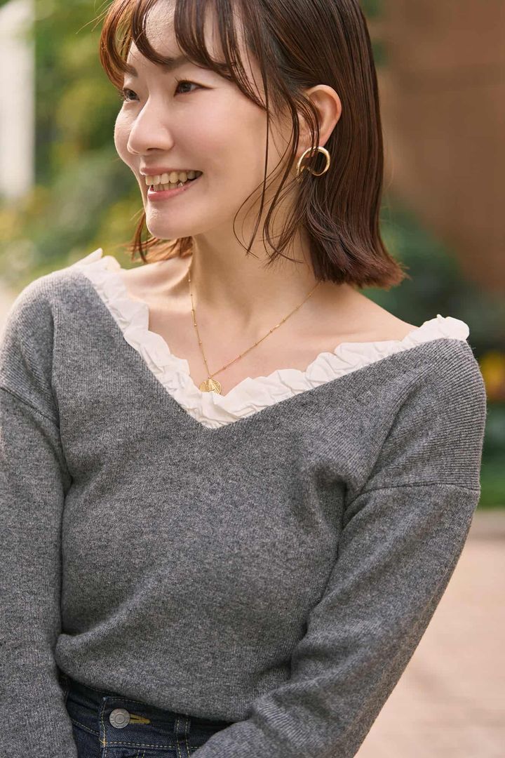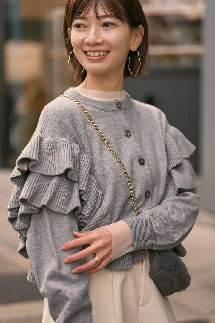 着映え【フリルニット】は、ベーシックカラーを選んで大人に昇華