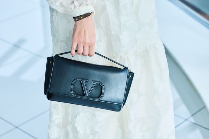 ヴァレンティノのミニバッグは、自分へのご褒美に数年前に購入。ロゴは大きめですが目立ちにくく、ブランド感があるのにいやらしくないところが気に入っています。コロンと小さめなのでホテル女子会にぴったり!