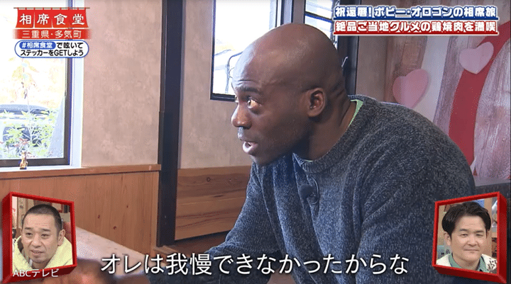 2026年で60歳になるタレントのボビー・オロゴンが、バラエティ番組『相席食堂』(ABCテレビ)に登場! ロケ先で酒を飲みまくり、芸能活動を自粛する原因となった6年前の出来事をぶっちゃけた。さらにボビーは、店の中で勝手な行動に出て……!?