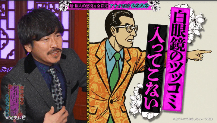 「白眼鏡かけている奴、信用できへん」「白眼鏡のツッコミの人、(内容が)ちょっとあんまり入ってこない」などと、眼鏡をテーマにスタジオ一同が盛り上がる中で、「どこでも話していないけど話したかった話、今の流れでしていいですか?」と切り出した森下。彼の母親は中学3年生頃に、「めちゃめちゃ目良いんですけど、眼鏡をどうしてもかけたいってなった」らしい。
