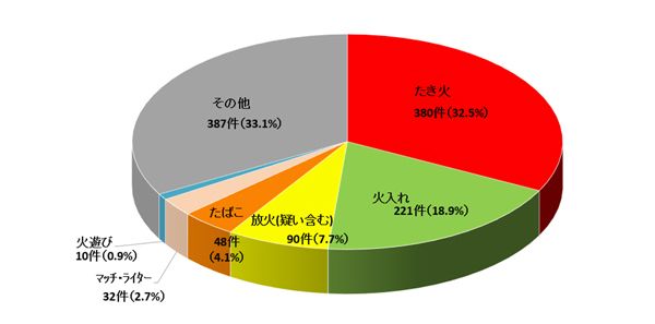 たき火や火入れが全体の半数近くを占めており、たばこのポイ捨てや火遊びなども林野火災の要因となっています。