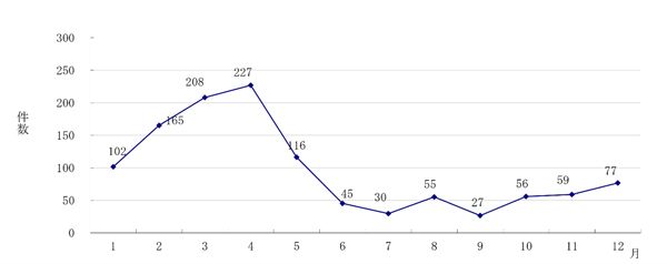 林野火災は、特に空気が乾燥しやすい1月から5月にかけて集中的に発生します。