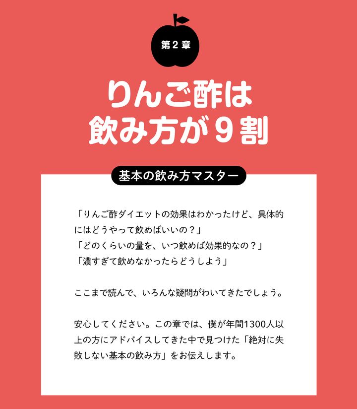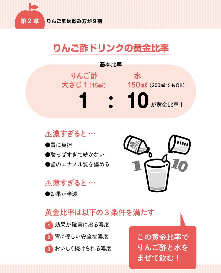 2. りんご酢ダイエットは飲み方が9割! りんご酢ドリンクの「黄金比率」とは?【りんご酢飲むだけで痩せていく ご飯もお酒もガマンなし #2】