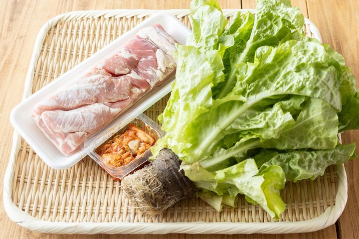豚バラ肉は脂が多い印象ですが、実はビタミンB1が豊富で、疲労回復をサポートしてくれる食材。サンチュで包んで食べることで、脂っこさを感じにくく、食後の満足感も高まります。