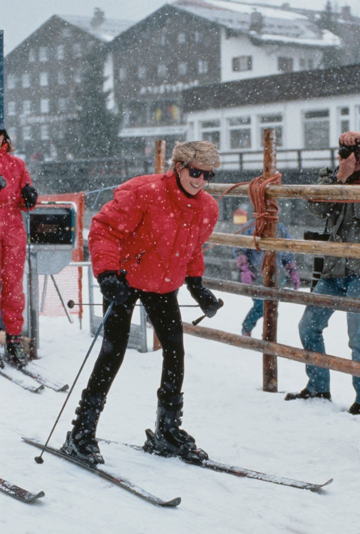 最も代表的なダイアナ妃のスキースタイルといえば、スキーギアブランド、「ヘッド」の鮮やかな赤のオールインワンタイプのスーツ。スイスのスキーリゾート、「クロスタース」をはじめ、いくつかのスキー場で披露しています。
